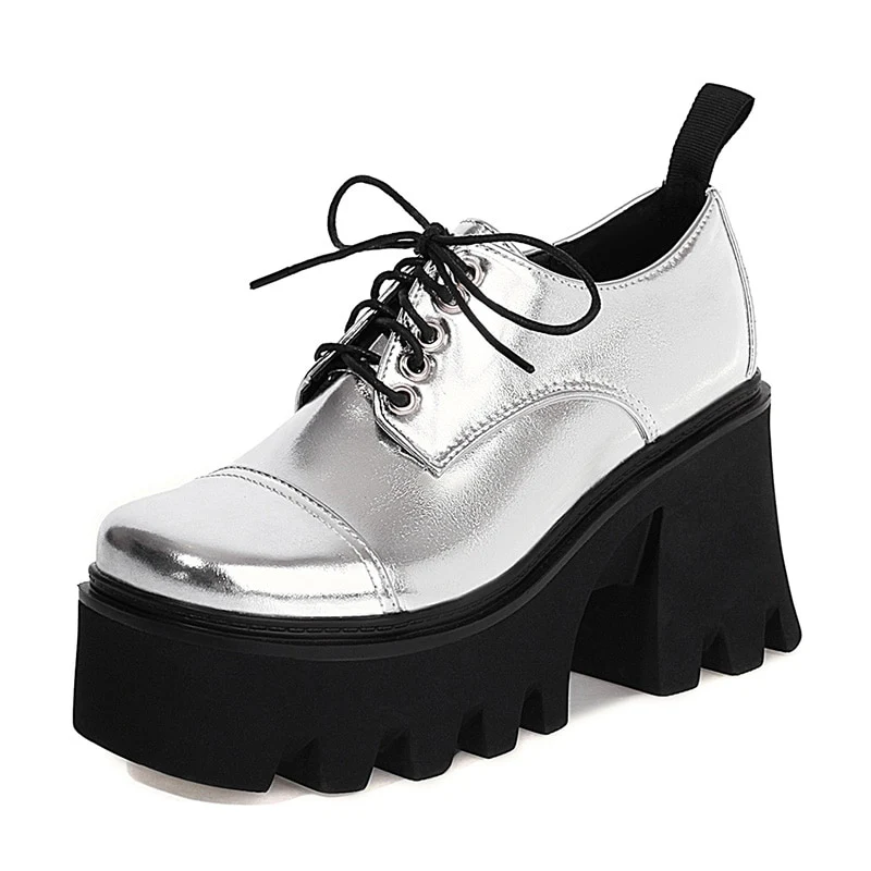 These stylish shoes feature a sleek silver finish that adds a spark to any outfit. The classic, preppy design is timeless and versatile.