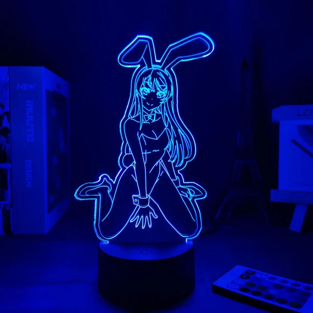 ThisĀ portable Desk Lamp elevates a dark bedroom by giving it aĀ futuristic Cyberpunk vibe with a wide range of neon colors that illuminate the beautiful silhouette of May Sakurajima, our favorite Bunny Girl.