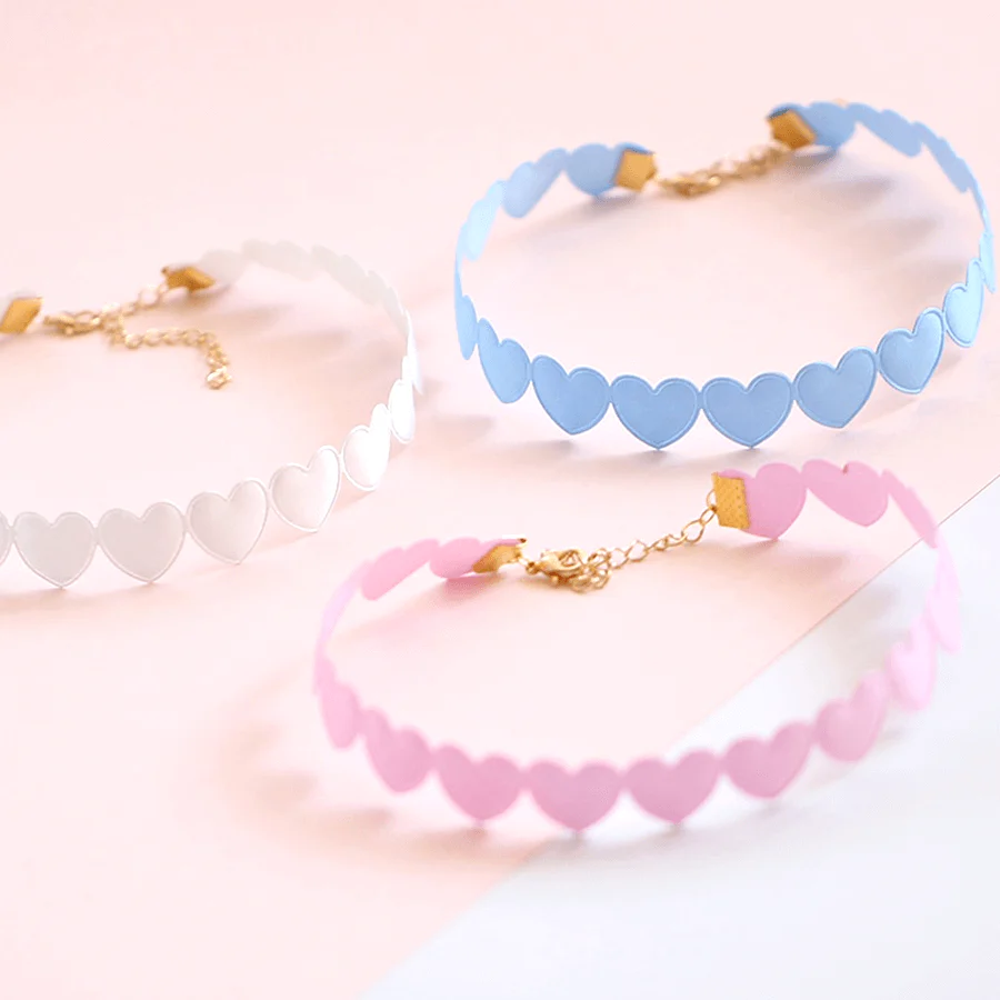 Sweet Lolita Aesthetic Choker Necklace Pastel Hearts